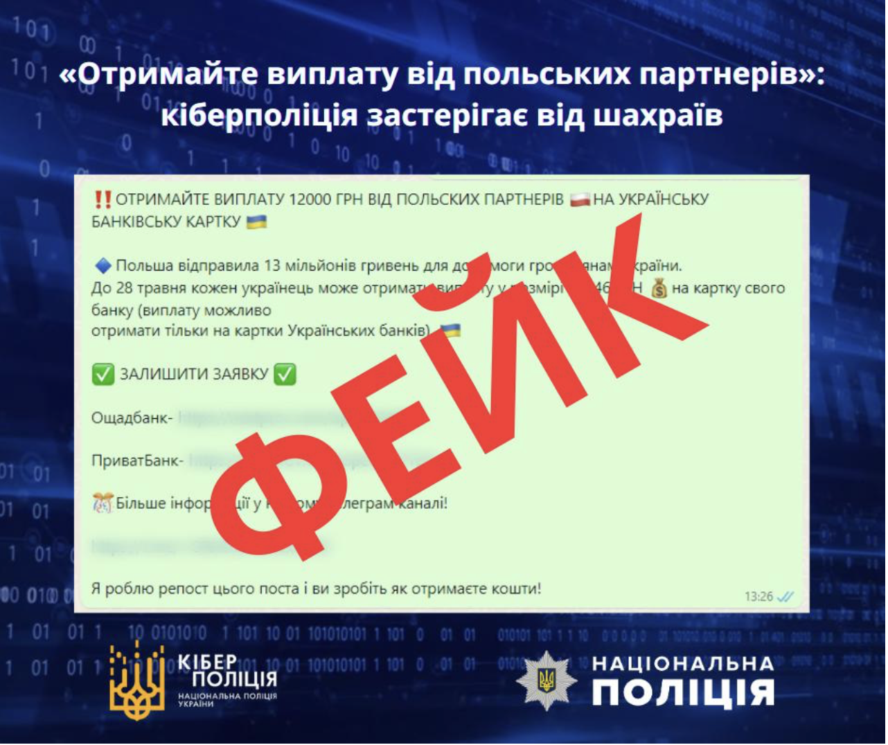 Якщо ви стали жертвою аферистів або маєте інформацію про шахрайські схеми, повідомляйте про це на сайті кіберполіції за посиланням https://ticket.cyberpolice.gov.ua/ .