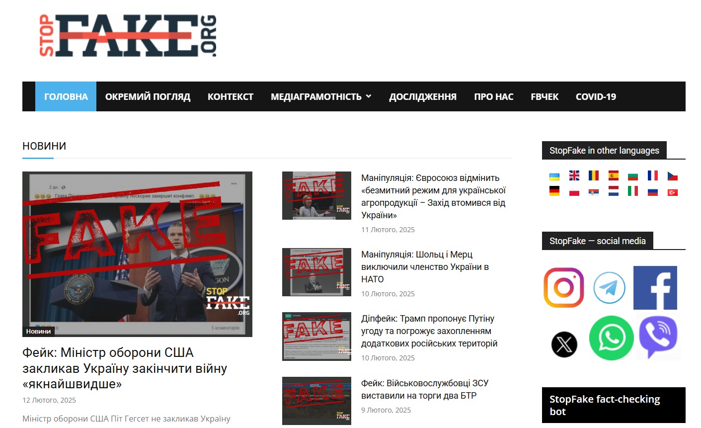 Сайт постійно публікує спростування фейкових новин, які поширюються через медіа або соціальні мережі.