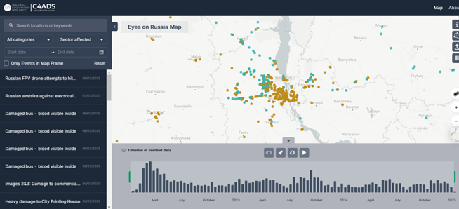 Eyeonrussia - ресурс, що дозволяє здійснювати аналіз зображень і відео, пов'язаних з рашистьскими злочинами.