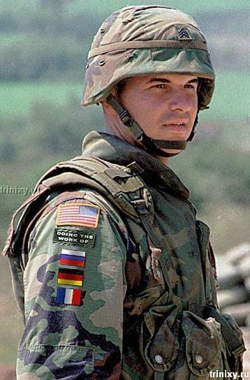 Наприклад, беремо фото військового США, з патчами наступних країн Німеччини, Франції та росії.